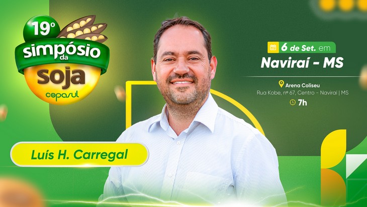 No próximo mês de setembro, a Copasul iniciará seu calendário de grandes eventos da safra 2023/24. O primeiro encontro está marcado para o dia 06/09, no espaço Arena Coliseu, em Naviraí, onde acontecerá o 19º Simpósio da Soja. Em meio à grade de palestras está a apresentação do engenheiro agrônomo e mestre em fitopatologia Luís Henrique Carregal, que vai abordar o tema “Atualidades sobre o manejo de doenças na soja”.