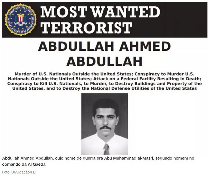 Abdullah Ahmed Abdullah, cujo nome de guerra era Abu Muhammad al-Masri, foi assassinado a tiros por dois homens em uma moto nas ruas de Teerã, em 7 de agosto, segundo a reportagem, publicada na sexta-feira (13).