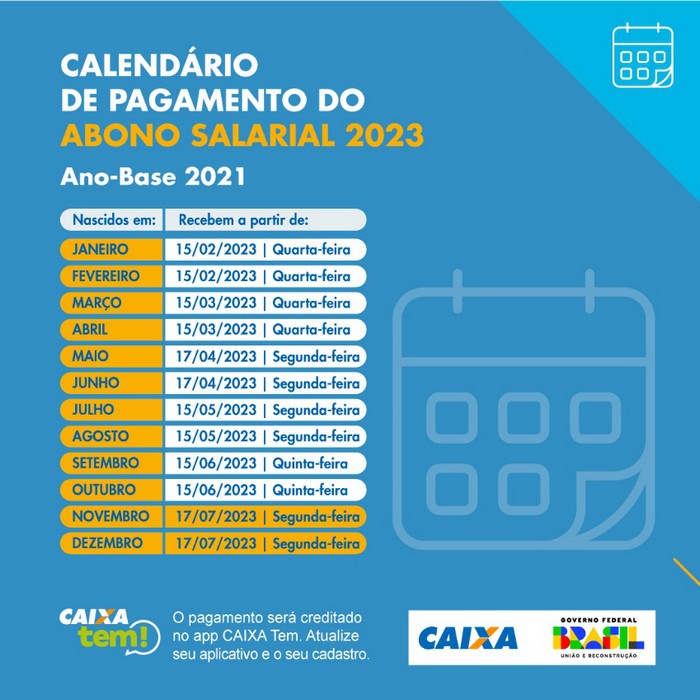 Mais informações sobre o Abono Salarial estão disponíveis no site da CAIXA.