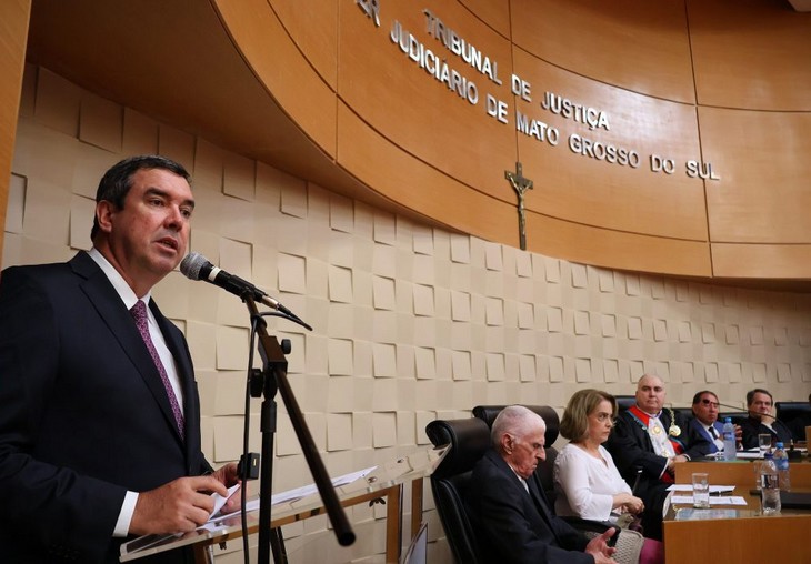 Ações da PGE ganham destaque no discurso do governador Eduardo Riedel, na posse do novo comando do TJMS