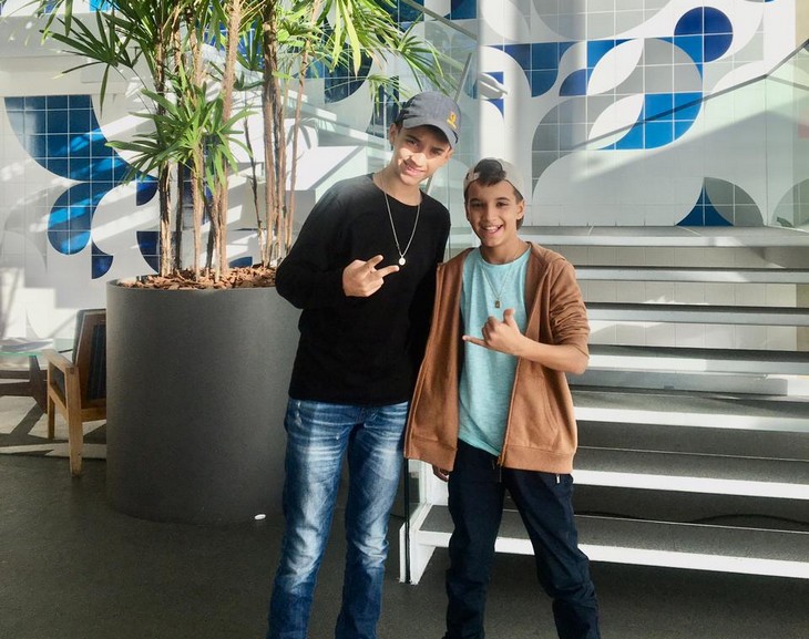 Os irmãos Eros Merlim de Sá, de 12 anos, e Lorenzo Merlim de Sá Azevedo, de 10, alunos da Escola Sesi Campo Grande, deram um show no palco do The Voice Kids, da Rede Globo, e agradaram os técnicos Carlinhos Brown, Iza e Mumuzinho no programa do último domingo (23/04).