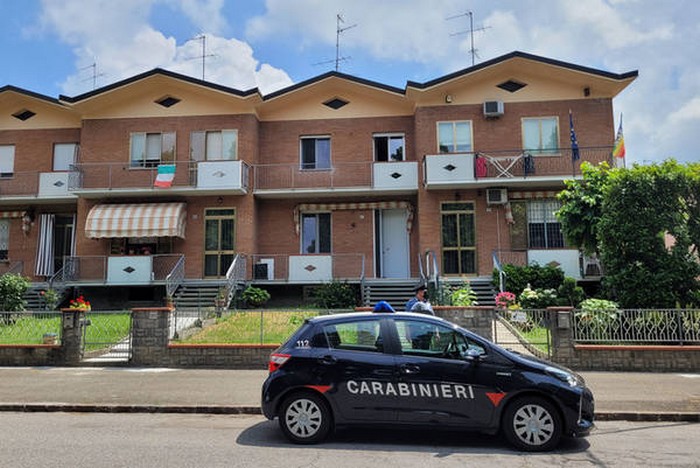 Viatura da polícia na frente da casa onde o bebê foi lançado – Foto: Ansa