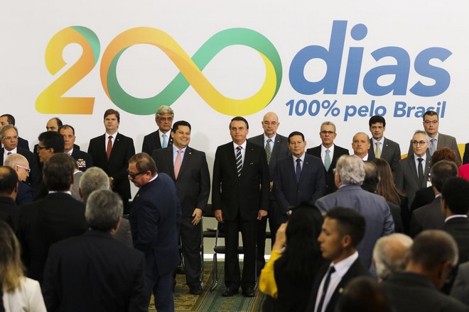 O presidente Jair Bolsonaro, participa da cerimônia alusiva aos 200 dias de governo, no Palácio do Planalto – Valter Campanato/ABr