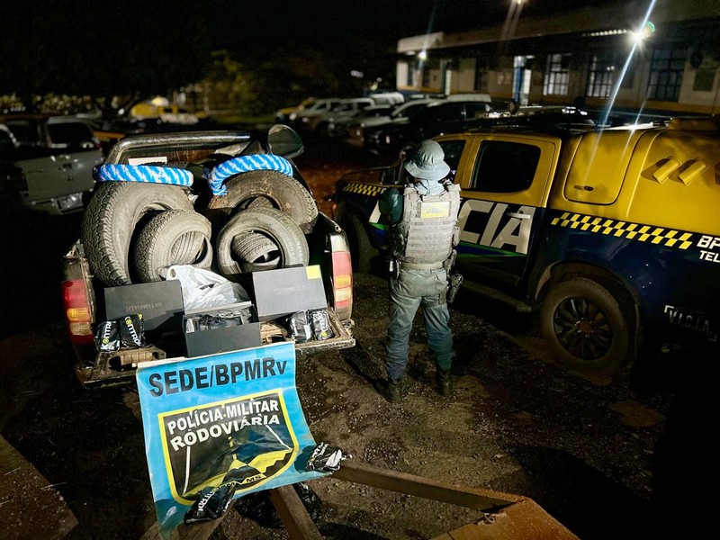 O veículo, que seguia com três ocupantes, foi abordado após os policiais perceberem produtos acondicionados no banco traseiro e na carroceria. Durante a vistoria, a equipe constatou que se tratava de itens trazidos do Paraguai, sem documentação fiscal.