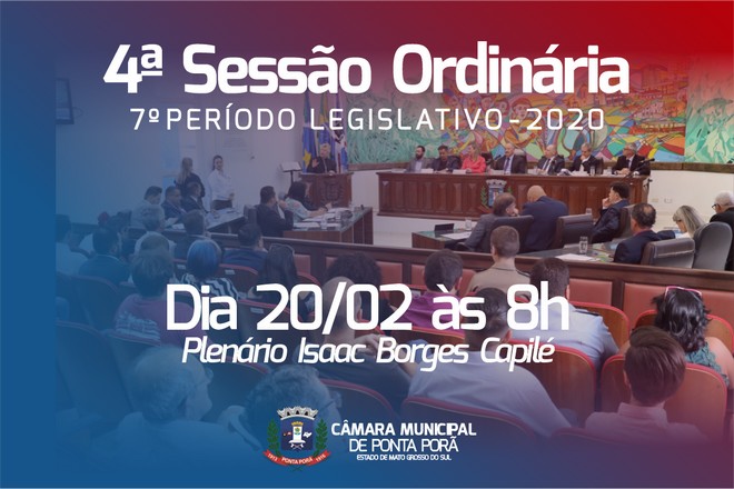 A Câmara Municipal de Ponta Porã, através do presidente Rony Lino Miranda, comunica que em virtude do feriado de Carnaval (25 de fevereiro) antecipará a sessão ordinária para esta quinta-feira, dia 20 de fevereiro, às 8 horas.