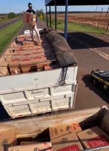 Dentro do caminhão, os policiais encontraram diversas caixas contendo os cigarros contrabandeados. A carga, sem documentação legal, configura crime de contrabando.