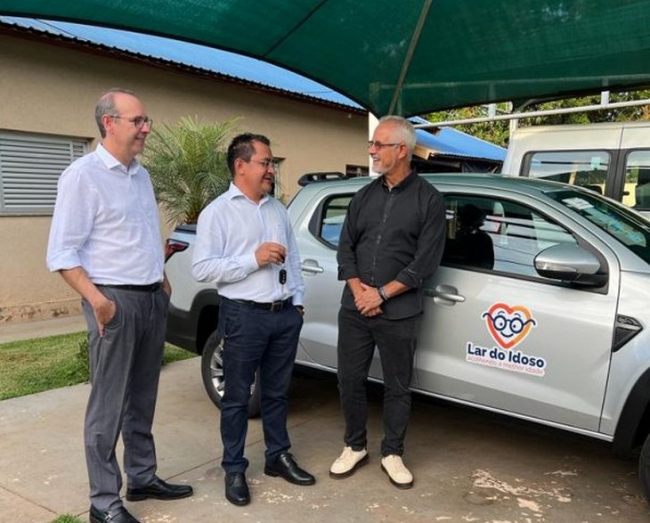 O Lar do Idoso recebeu nesta terça-feira (14), um veículo Strada comprado com os recursos do Fundo Municipal da Pessoa Idosa. A entrega simbólica foi realizada pelo líder do Governo na Câmara, o vereador Sérgio Nogueira e o Promotor do MPMS (Ministério Público de Mato Grosso do Sul), Luiz Gustavo Terçariol, ao atual diretor, Leonel José.