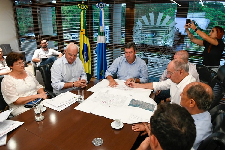 O governador Eduardo Riedel se reuniu nesta terça-feira (27) com as lideranças de Caracol para definir as prioridades do município, que receberão apoio e investimentos do Estado. Ficaram acordados projetos importantes como drenagem e recapeamento na área central, pavimentação no distrito de Alta Caracol e acesso ao Clube do Laço da cidade.