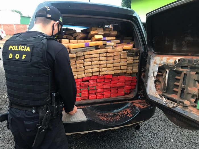 Um veículo Mitsubishi Pajero TR4, carregado com 1.269 volumes prensados de maconha, com peso total de 1.050 quilos, foi apreendido na tarde desta quinta-feira, 15, por policiais do Departamento de Operações de Fronteira (DOF). Um casal foi preso.