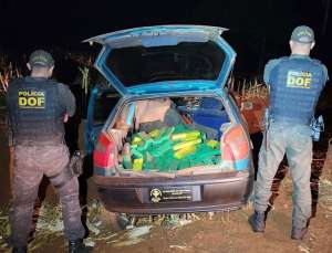 Cerca de dois quilômetros depois do local da ordem de parada dos policiais, próximo de uma plantação de milho, o veículo caiu em uma vala e o casal tentou fugir a pé, mas foi alcançado e detido. No veículo estavam 232 quilos de maconha, mais 1,2 quilo de skank. Eles disseram que foram contratados para pegar a droga em Ponta Porã e entregar em Campo Grande.