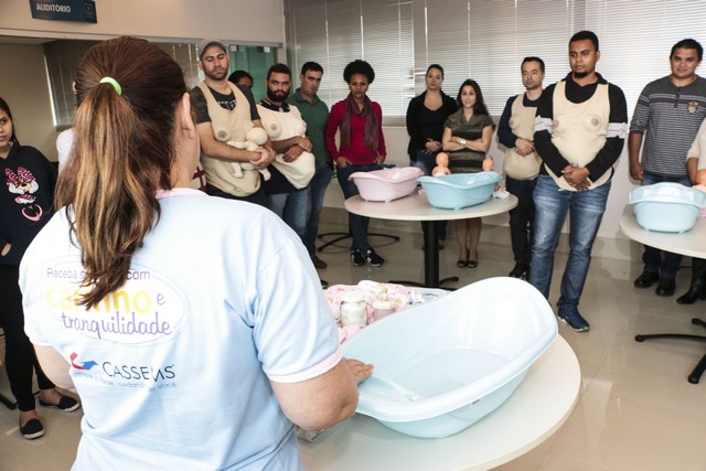 As atividades físicas também são importantes para estimular o bom desenvolvimento da gestação, a educadora física Ana Carolina Blanco salienta que a Cassems disponibiliza hidroginástica para as gestantes, ação que minimiza os desconfortos deste período. O casal Daniela Nogueira e Leandro Monteiro espera o primeiro filho. A mãe explica que saiu do curso sem as dúvidas que tinha. “Eu sou marinheira de primeira viagem, é meu primeiro filho, estou super ansiosa e consegui tirar todas as minhas dúvidas”.