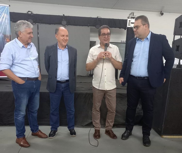 Cemar com Eudélio Mendonça, presidente municipal do PP, deputado estadual Junior Mochi e o prefeito Alan Guedes – Divulgação