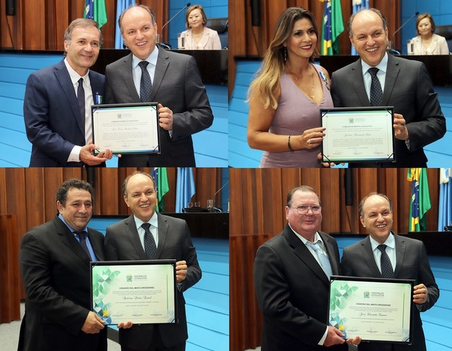 O deputado Junior Mochi (MDB), homenageou a servidora pública estadual, Jacilene Ferreira da Silva, o empresário José Clarindo Capuci, o desembargador Luiz Tadeu Barbosa Silva e o agropecuarista Roberto Pedro Tonial.