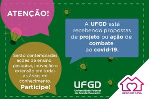 Hoje foi publicado o Edital nº 1 do COE (Comitê Operativo de Emergência) da UFGD, em conjunto com a PROGRAD, a PROPP e a PROEX, para seleção de propostas de projetos e ações que visem o combate ao COVID-19 e às consequências da pandemia, das modalidades ensino, pesquisa, inovação e extensão, nas diversas áreas de conhecimento.