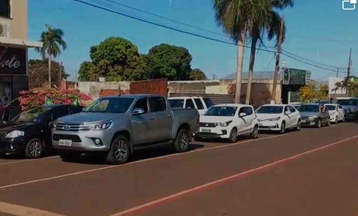 Com buzinaço, comerciantes de Dourados estão realizando carreata reivindicando a abertura do comércio em Dourados. Centenas de veículos participam do ato.