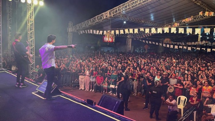Diversão, boa música, cultura e fomento ao comércio local. A segunda noite da Festa Junina 2024 reuniu cerca de 9 mil pessoas na última quinta-feira (20/6), no Centro de Convenções de Dourados, conforme levantamento da Guarda Municipal. Com show principal da dupla Munhoz & Mariano, a festa ainda contou com as apresentações dos artistas regionais, Rafael Sá e do grupo Forrodiano.