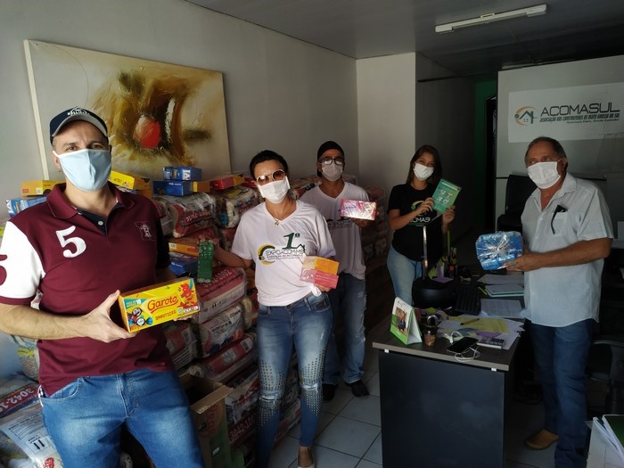 Foram arrecadadas 126 cestas básicas compradas por integrantes da diretoria, associados e parceiros da Acomasul. Em cada cesta básica está indo pelo menos uma caixa de bombom para alegrar a Páscoa das crianças, e um folheto explicativo sobre prevenção à Covid-19.