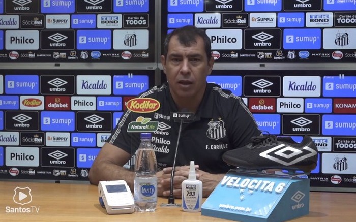 O técnico do Santos, Fábio Carille, em coletiva – Reprodução TV SFC
