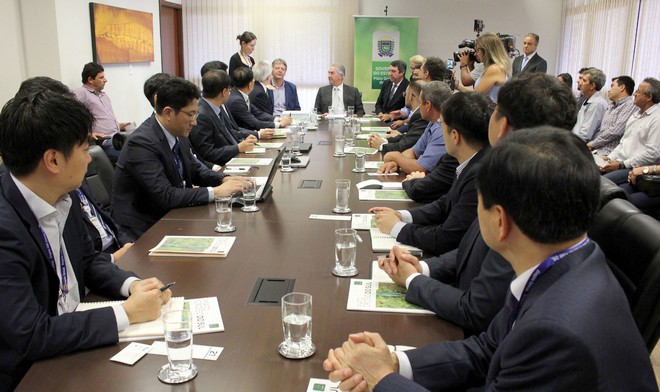 Uma comitiva de empresários coreanos e o prefeito Edinho Takazono foram recebidos nesta segunda-feira (29.4), no gabinete, pelo governador Reinaldo Azambuja e por secretários para conversar sobre o assunto. O governador Reinaldo Azambuja afirmou que Mato Grosso do Sul tem total interesse em receber o projeto e destacou as condições favoráveis para a implantação da usina no Estado.