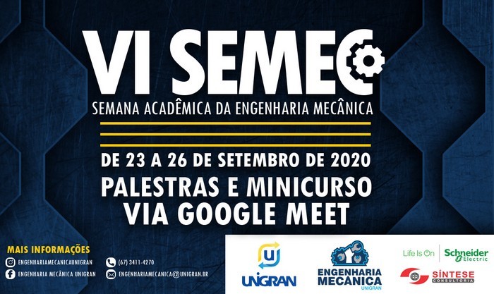 Curso de Engenharia Mecânica da UNIGRAN promove 6º Semec com palestras e minicursos on-line
