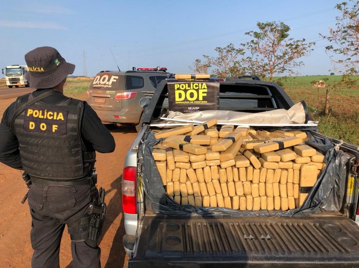 Policiais do Departamento de Operações de Fronteira (DOF) apreenderam, na manhã desta terça-feira, 05, na MS-156, área rural do município de Caarapó, uma camionete Chevrolet S10, de cor prata, carregada com 1.050,00 quilos de maconha distribuídos em vários volumes prensados.