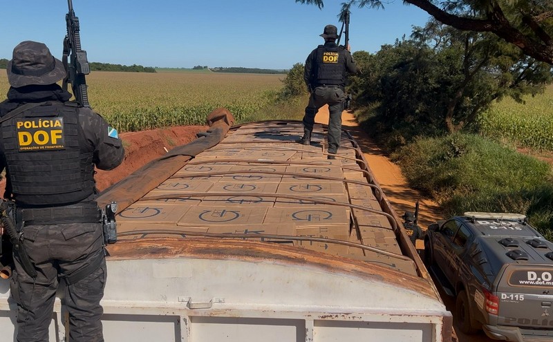 Policiais militares do DOF (Departamento de Operações de Fronteira) apreenderam nesta segunda-feira (19), em Dourados, uma carreta caçamba carregada com mais de 42 mil pacotes de cigarros contrabandeados do Paraguai. Na ação ninguém foi preso.