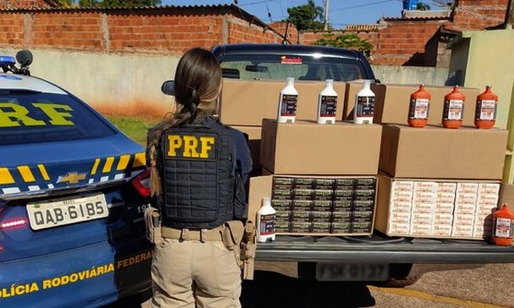 Os policiais rodoviários federais fiscalizavam na BR-158, quando abordaram uma Toyota/Hilux. Na carroceria, a equipe encontrou várias caixas com medicamentos de origem estrangeira. A mercadoria não documentação legal.