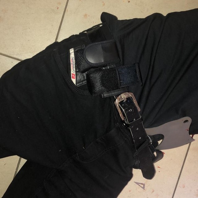 - A PM encontrou no local um revólver 38, uma besta (um artefato com arco e flecha), objetos que parecem ser coquetéis molotov e uma mala com fios.