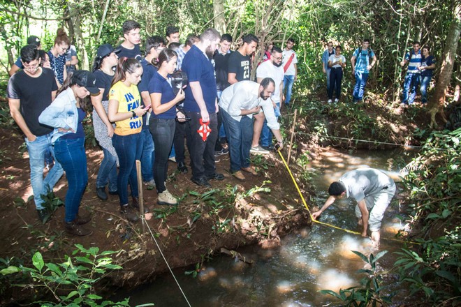 Correa explicou sobre o objetivo da atividade. “Buscamos realizar o teste hidrométrico, utilizando a metodologia de flutuação, que por meio de equações utilizando o espaço e o tempo, calcula a velocidade da vazão de um rio. Esta foi uma forma de aplicar os conhecimentos de mecânica dos fluídos, fenômenos dos transportes e hidráulica. A partir desse experimento, o aluno consegue aplicar em campo a teoria que é passada em sala de aula, pois eles tiveram a oportunidade de diagnosticar o local, ou seja, ver como o rio se comportaria caso recebesse alguma obra de reservatório, barragem, etc”, falou.