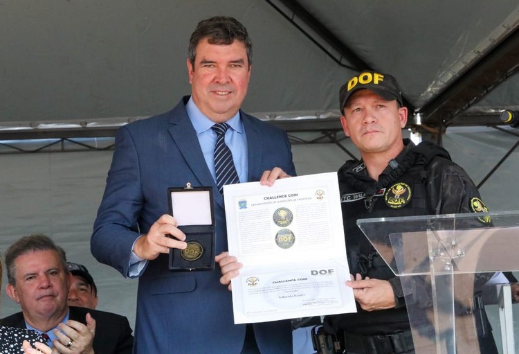 Presente no evento, o governador Eduardo Riedel foi um dos homenageados na manhã desta segunda-feira (29), recebendo a outorga da medalha Águia da Fronteira. Criado em 1987, o DOF atualmente estende suas ações há 53 municípios de Mato Grosso do Sul.