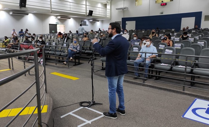 O presidente do Sinpol, Giancarlo Miranda, participou na tarde desta segunda-feira, 23, da Audiência Pública sobre a Reforma Administrativa PEC 032/2020, na Câmara Municipal de Campo Grande.
