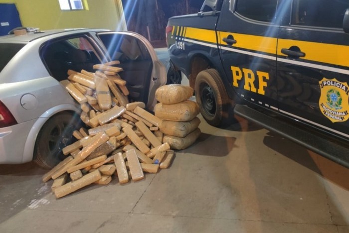 Em um Chevrolet/Onix foram apreendidos 275 kg de maconha – Divulgação/PRF