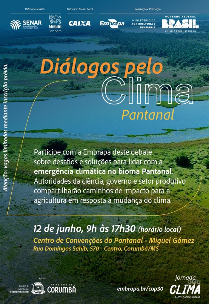 O circuito de eventos compõe a Jornada pelo Clima, projeto de grande envergadura que evidencia a ciência na agropecuária brasileira como um pilar essencial para a transformação sustentável. A Jornada pelo Clima conta com patrocínio master do Serviço Nacional de Aprendizagem Rural (Senar) e da Nestlé, no Bioma Local da Caixa Econômica Federal e apoio da Prefeitura Municipal de Corumbá.