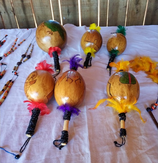As artesãs estarão expondo para comercialização colares, brincos, redes, ervas medicinais, sabonetes terapêuticos, arco e flecha e cestarias com matérias primas extraídas das próprias aldeias.