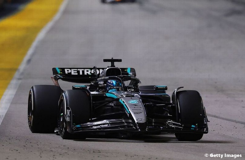 George Russell dominou a corrida em Marina Bay e venceu sem contestação, com Verstappen em segundo. Norris chegou em terceiro, e garantiu o Mundial de Construtores à McLaren