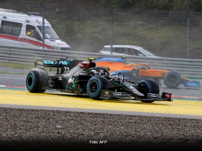 Com apenas um pit stop, o heptacampeão terminou a prova com os pneus intermediários já muito gastos, mas fez valer a estratégia arriscada da equipe. O companheiro Valtteri Bottas, o único que poderia impedir o triunfo neste domingo, teve uma corrida para esquecer, rodando logo na primeira curva e não conseguindo se recuperar. Ele foi apenas o 14º.