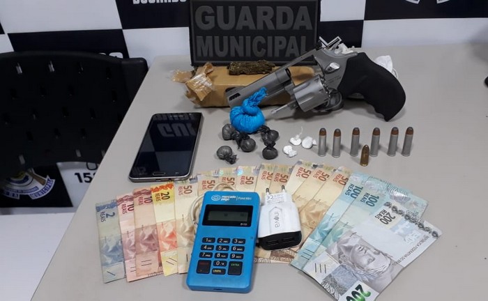 Diante da situação os guardas municipais prenderam o autor por posse ilegal de arma de fogo e tráfico de drogas sendo encaminhado a Delegacia de Polícia Civil para os procedimentos legais.