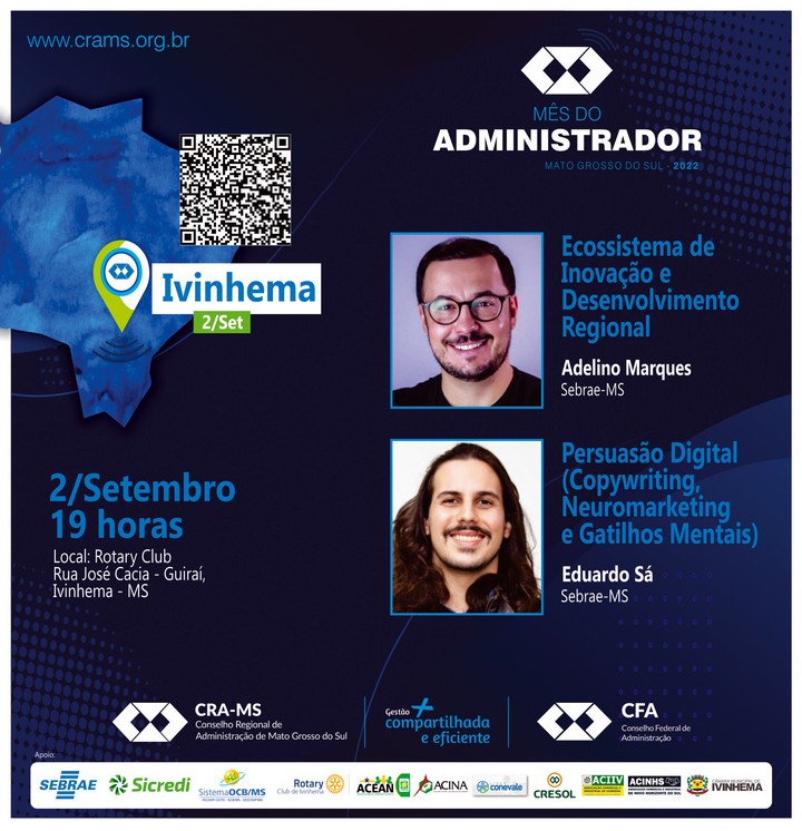 Mais informações sobre a agenda de Setembro: eventos@crams.org.br ou pelo WhatsApp (67) 3316-0300.