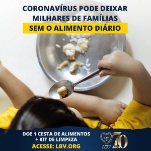 Nesse momento de pandemia, a Solidariedade e a União de todos são essenciais para ajudar as famílias de baixa renda a vencer esse desafio coletivo e conter o avanço do novo coronavírus. Muitas dessas famílias, além do alimento tão necessário à sobrevivência, não têm sequer itens de limpeza em suas casas. Por isso, a LBV convida todos a fazer doações para que as famílias não fiquem desamparadas.