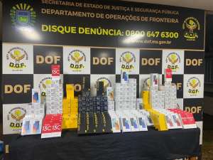 Policiais militares do DOF (Departamento de Operações de Fronteira) apreenderam nesta terça-feira (04), na MS-163, em Caarapó, mais de 200 aparelhos de telefone celular que estavam escondidos na carroceria de uma carreta Scania/ R-440, conduzida por um homem de 57 anos de idade.
