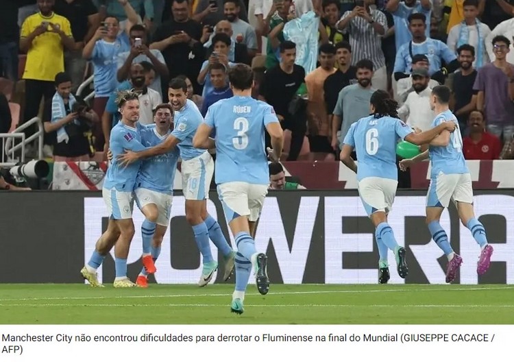 O Manchester City venceu o Fluminense por 4 a 0 e conquistou o título do Mundial de Clubes, no King Abdullah Sports City. Julián Álvarez (2), Nino (contra) e Foden foram os responsáveis pelo triunfo dos ingleses. As informações são do Lance!.