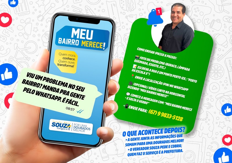 Com o objetivo de ampliar a participação popular e aproximar ainda mais o mandato da comunidade douradense, o vereador Edson Souza (União Brasil) lançou o programa “Meu Bairro Merece”, um canal direto para que moradores enviem solicitações, denúncias, fotos, vídeos e sugestões de melhorias para os bairros da cidade.