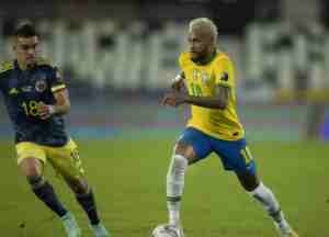 Neymar em jogo contra a Colômbia – © Lucas Figueiredo/CBF