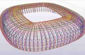 O Estádio Spartak de Moscou, por exemplo, tem capacidade para receber 45 mil espectadores durante os jogos. Tubos mais grossos foram usados na construção, o que reduziu o consumo de metal em 1,3 (vezes) – como resultado, o telhado pesa cerca de 8.500 toneladas a menos que um convencional. Com os arquivos de modelo 3D do Tekla usados junto da produção automatizada, o projeto foi bem executado desde a fase do planejamento até a fabricação.