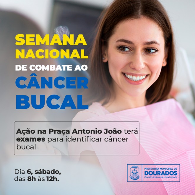 No sábado (6), o Núcleo de Atenção à Saúde Bucal fará uma ação na Praça Antônio João, das 8h às 12h com atividade e exames para identificação do câncer.