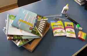 Para os alunos dos anos iniciais (1° ao 5° ano), serão entregues dois apontadores, duas borrachas, quatro cadernos tipo ‘brochurão’ de 80 folhas, um caderno de desenho, uma caixa com 12 unidades de caneta hidrográfica, um tubo de cola branca, uma caixa de lápis de cor, uma caixa de giz de cera, quatro lápis grafite, uma régua e uma tesoura sem ponta.