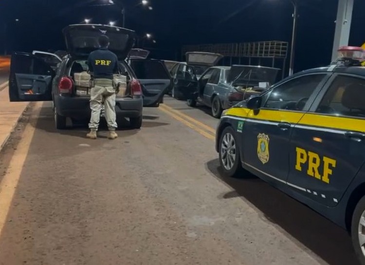PRF apreende comboio de 12 veículos abarrotados de mercadorias contrabandeadas