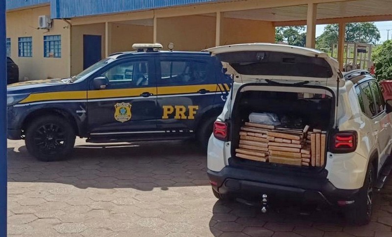 A droga foi localizada após a abordagem de um veículo Jeep Renegade. Durante a entrevista, o condutor apresentou informações inconsistentes e, diante do forte odor característico vindo do automóvel, acabou confessando que transportava entorpecentes.