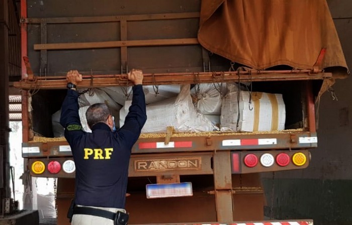 Os policiais rodoviários federais realizavam ronda na BR-463, quando avistaram um caminhão Volvo/NL12, acoplado a um semirreboque, realizar uma manobra de desvio para a MS-386. A equipe realizou a abordagem da carreta e identificou o motorista, um homem, de 56 anos. Desconfiados do comportamento do condutor, os policiais acompanharam o caminhão até a Unidade Operacional do Capey, onde foi realizada vistoria na carga de grãos.