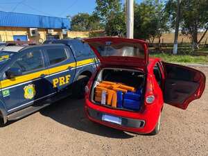 A Polícia Rodoviária Federal (PRF) apreendeu 589 quilos de maconha nesta quarta-feira (22), durante fiscalização de rotina na BR-267, no município de Nova Alvorada do Sul. A droga estava sendo transportada em um veículo Fiat/Palio abordado pelos agentes.